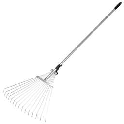 Грабли веерные стальные Palisad LUXE 617905, 540 х 1450 мм, с 24 плоскими зубьями и лакированным черенком, предназначены для очистки от листвы и мусора газонов, придомовых территорий и грядок. Незаменимы на дачном участке. Прямая рабочая кромка обеспечивает высокую эффективность при выполнении уборочных работ.ПреимуществаГрабли изготовлены из рессорно-пружинной стали и покрыты порошковой эмалью, поэтому они долговечны и не боятся коррозии.Поперечная планка повышает прочность инструмента и его устойчивость к нагрузкам.Грабли поставляются в сборе с лакированным черенком, обеспечивающим комфорт в работе.