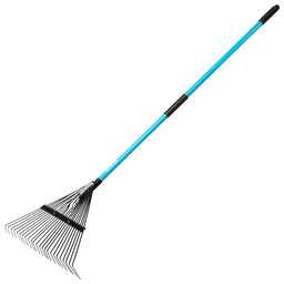 Веерные стальные грабли Palisad LUXE 617199 длиной 1520 мм, с рабочей частью шириной 570 мм, с 24 зубьями и фибергласовым черенком с ПВХ-накладкой, — оптимальный инструмент для сбора мелкого мусора, листьев и скошенной травы с газонов и грядок. 24 плоских зуба обеспечивают высокую эффективность работы и позволяют быстро решать поставленные задачи. Грабли пригодятся владельцам дачных участков. Преимущества Прочность — стальная рабочая часть с поперечной планкой выдерживает изгибающие нагрузки без риска поломки и деформации. Защита от разрушения — порошковая краска предотвращает образование коррозии. Надежность — легкий и прочный фибергласовый черенок с деревянной вставкой не сломается даже при интенсивном использовании, эмалевое покрытие обеспечивает дополнительную защиту от разрушения. Комфортная работа — ПВХ-накладки на черенке обеспечивают удобный хват и не скользят в руках. Удобное хранение — в хвостовой части черенка предусмотрено отверстие для подвешивания грабель.