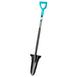 Штыковая лопата Palisad LUXE 61313 длиной 1490 мм, с углубленным полотном размером 210 x 290 мм и фибергласовым черенком с ПВХ-накладками, предназначена для выполнения земляных работ. Оптимальна для вскапывания грунта и рытья ям. Заостренное углубленное полотно легко проникает в землю и облегчает выкапывание, что позволяет быстрее справиться с поставленными задачами. Преимущества Прочность — фибергласовый черенок с деревянной вставкой и стальное полотно твердостью 40-50 HRC выдерживают изгибающие нагрузки без риска поломки. Надежная конструкция — черенок закреплен в тулейке при помощи заклепок, производитель дополнительно предусмотрел стальное фиксирующее кольцо. Защита от разрушения — полотно покрыто порошковой краской, на черенке предусмотрена фибергласовая оплетка, фиксирующее кольцо оцинковано. Комфортная работа — нескользящие ПВХ-накладки в хвостовой и средней части черенка обеспечивают надежный хват, что особенно удобно во время длительной работы.