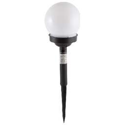 светильник-шар на солнечной батарее, D10см размер 10X10X34CM панель батареи: 30X30mm свет белый, 1 лампочка LED Батарея 1XAA 1.2V 40mAh Ni-MH цвет -черный Материал: пластмасса Время зарядки в солнечную погоду около 8 часов Время работы в темное время суток после полной зарядки - около 8 часов