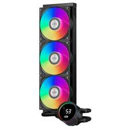 Система охлаждения PCCooler DA360 Pro ARGb Digital BK (300W, 360mm, LED temp., Black, ARGb/ Fans: 3x120mm, 75.8CFM, 33.7dBA, 2200RPM/ Pump height 57mm, 28dBA, 3000RPM, Rad thickness 27mm/ S: 1851, 1700, 1200, 20XX, 115X, AM5, AM4)