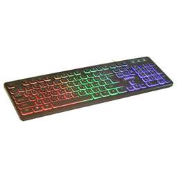 Клавиатура проводная, мультимедийная, интерфейс USB, количество кнопок - 104, количество функциональных клавиш быстрого доступа к различным функциям ОС - 12, защита от влаги, внутренняя LED-подсветка, длина кабеля - 1,8 м.