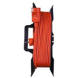 Удлинитель на катушке, 4 гнезда, 10 А, рабочая частота 50/60 Гц, защита от воды и пыли: IP44, автоматический предохранитель для отключения, медный провод выдерживает заявленную нагрузку, может эксплуатироваться в помещениях с повышенным уровнем влажности или на улице , без заземления, длина - 30 м