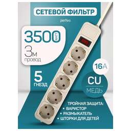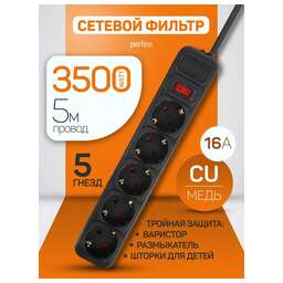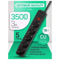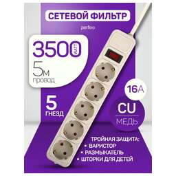 Сетевой фильтр Perfeo "REAL POWER" — надежная защита вашей техники 16А Мощный сетевой фильтр с 5 розетками для одновременного подключения всей вашей электроники и бытовой техники. Безопасность и функциональность в современном дизайне. Тройная защита: • Защита от перегрузки • Защита от короткого замыкания • Защита от импульсных помех Мощные характеристики: • 5 розеток с заземлением • Максимальный ток: 16А • Мощность: 3500 Вт • Напряжение: 220-240 В • Световой индикатор работы Преимущества: • Подходит для энергоемкой техники (кондиционеры, обогреватели, компьютеры) • Прочный негорючий корпус • Компактный эргономичный дизайн • Стильный серый цвет • Долговечные контакты Идеальное применение: • Домашний кинотеатр и аудиосистема • Рабочее место с компьютерной техникой • Кухня с бытовой техникой • Офисные помещения Гарантия качества и безопасности! Сетевой фильтр Perfeo "REAL POWER" — это разумный выбор для тех, кто ценит надежность и защиту своей электроники от любых перепадов напряжения!