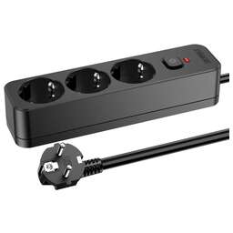 Cетевой фильтр, количество розеток - 3 (евростандарт с заземлением), номинальный ток нагрузки - 10А, номинальное входное напряжение - 220В, корпус из ударопрочного негорючего материала, длина кабеля - 1,8 м.