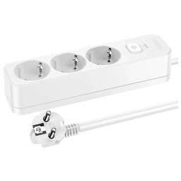 Удлинитель, количество розеток - 3 , максимальный ток нагрузки - 10 А , номинальное входное напряжение 220В, суммарная мощность нагрузки - 2,2 кВт, корпус из ударопрочного негорючего материала, материал контактов - латунь, долговечный кабель, длина кабеля - 3,0 м.