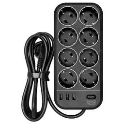 POWERCOM Сетевой фильтр SP-08 USB03AB 3,0М 3м (8 розеток) черный (коробка)