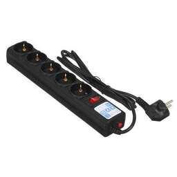Входная вилка, тип: EURO. Длина шнура: 3. Максимальная нагрузка: 2200. Номинальный ток: 10. Номинальное напряжение питающей сети: 250. Частота сети: 50. Максимальный импульсный ток помехи: 2500. Подавление импульсных помех: да. Защита от короткого замыкания: есть. Защита от перегрева: есть. Особенности: 5 розеток с заземлением. Однополюсный выключатель со световой индикацией. Автоматический, многоразовый предохранитель. Защита от импульсных помех и короткого замыкания. Материал корпуса соответствует требованиям пожаробезопасности. Отверстия для крепежа.. Количество выходных розеток: 5. Габариты упаковки (ед) ДхШхВ: 0.371x0.084x0.061. Вес упаковки (ед): 0.63. Гарантия: 48 мес.. Цвет: черный. Максимальная нагрузка: 2200 Вт. Входная вилка: EURO. Количество выходных розеток: 5. Длина шнура: 3 м