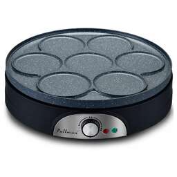 Двухсторонняя панель - 2 прибора в 1: для больших блинов диаметром 37 см или 7 оладий диаметром 11 см. Можно приготовить яичницу на 7 человек одновременно, поджарить бекон, подогреть пиццу, выпекать лепешки, овощные и печеночные оладьи и многое другое Мощность 1500 Вт. Высококачественное керамическое антипригарное покрытие. В комплекте: пластиковые шпатель, лопатка, кисть с силиконовыми ворсинками в подарок Размеры аксессуаров: шпатель для теста 16*13,5 см, лопатка 30*3,5*0,38 см, кисть 21*3,5 см. Индикатор нагрева и сети. Регулировка мощности нагрева. Сменные панели – легко мыть Размер прибора 38,5*40*9,8 см. Внутренний диаметр на большой блин - 37,2 см. Внутренний диаметр на малый блин - 11,1 см. Электропровод 75 см. Вес прибора – 2.6 кг.