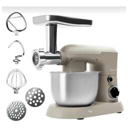 Профессиональный кухонный комбайн R105-110 мощностью 1500 Вт с 10 скоростями (от 70 до 230 об/мин) идеально подходит для разнообразных кулинарных задач. Прибор работает от сети 220-240 В и оснащен 4-литровой чашей из нержавеющей стали, обеспечивающей долговечность и удобство в использовании. Пластиковый корпус бежевого цвета сочетает в себе легкость и прочность, а низкий уровень шума делает работу комбайна комфортной. В комплект входит полноценная мясорубка из нержавеющей стали с дополнительными аксессуарами: толкателем, лотком, шнеком, зажимной гайкой, лезвием и решетками с отверстиями 5 мм и 7 мм. Устройство также включает крюк для теста, плоский битер, венчик для взбивания и защитную крышку от брызг, что делает его универсальным помощником на кухне. Класс защиты I обеспечивает безопасность при эксплуатации. Комбайн поставляется с металлической чашей, руководством пользователя и упакован в подарочную и транспортировочную коробки, что делает его отличным выбором для тех, кто ценит качество и функциональность. Длина кабеля 1 м обеспечивает удобство размещения на кухне.
