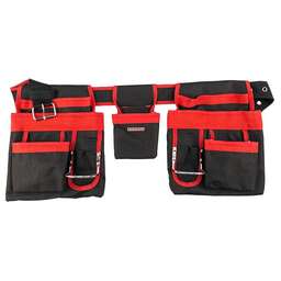 Сумка-пояс монтажника REXANT RE-15 оснащена 15 карманами и предназначена для комфортной транспортировки инструментов. Выполнена из водонепроницаемого комбинированного материала, пропитанного полиуретановым составом и поливинилхлоридом, который используют в изготовлении тентов для шатров, торговых палаток и различного снаряжения для туристических поездок. Надежные металлические элементы обладают длительным сроком службы. Характеристики: Габариты: 60х30 см Длина пояса: 130 см Материал: ткань «Оксфорд» 600D PVC PU Максимальный выдерживаемый вес: до 10 кг Вес рюкзака: 0.5 кг Цвет: черный, красный Преимущества: 2 симметричных больших подсумника, на каждом расположены карманы в количестве 15 штук 1 внутреннее отделение Прочный двухрядный полипропиленовый пояс с мощной металлической пряжкой Сумки закреплены на поясе металлическими заклепками