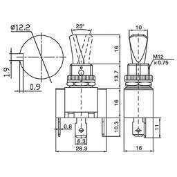 Тумблер 220V 10А (2c) ON-OFF однополюсный Mini (ASW-23) предназначен для коммутации электрических цепей переменного тока напряжением до 250В. Такая разновидность переключателей применяется на лицевых панелях в качестве комплектующих изделий различного электрооборудования (в измерительных приборах, блоках питания, электроустановках на различных производствах, легковых и грузовых автомобилях, поездах и многих других местах). Отличительной особенностью тумблера является перекидной переключатель, принцип действия которого основан на его перемещении в одну из позиций. Для переключения в нужное положение требуется приложить некоторые усилия. Монтаж осуществляется без применения винтов на плоских панелях толщиной от 0.8мм до 4мм. Подключение контактов осуществляется с помощью винтов.