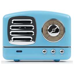 Портативня колонка, пластик, голубой, Пластик, Ретро дизайн,Воспроизведение аудио с microSD карт USB, Bluetooth стандарт: v4.1 Мощность динамиков: 3 Вт, Аккумулятор: 400 мАч / 3.7 В размеры 74*97*57 мм вес 186 г.