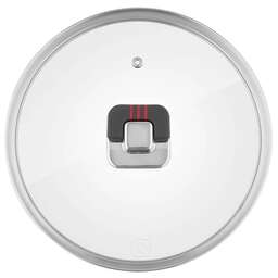 Крышка, Диаметр: 24 см, Форма крышки: круглая, Материал крышки: стекло, Материал ободка крышки: нержавеющая сталь, Материал ручки: бакелит/силикон, Цвет крышки: прозрачный, Цвет ручки: серый, Клапан для выпуска пара, Использование в посудомоечной машине,