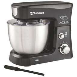 Миксер настольный с планетарным вращением насадок, максимальная мощность 1000 Вт, 6 скоростей работы, чаша из нержавеющей стали (3,5л) с прозрачной крышкой и отвертсием для добавления продуктов в процессе, 3 насадки (объемный венчик, плоский венчик и крюк), лопаточка в комплекте.