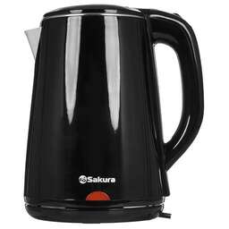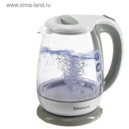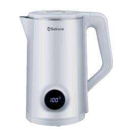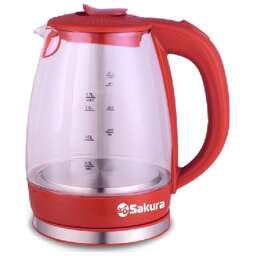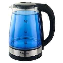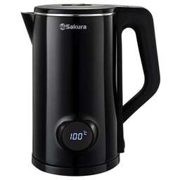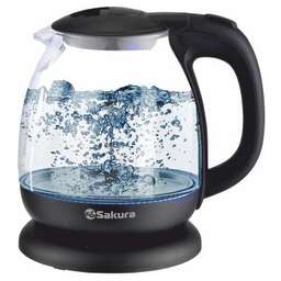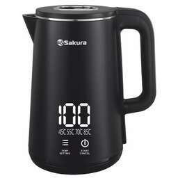 SAKURA SA-2724DBK 1,7 л, 1850-2200 Вт, стеклянный корпус, диск, 7 температурных режимов (40, 50, 60, 70, 80, 90, 100С), поддержание температуры, сенсорное управление, LED дисплей, функция дехлорирования, отключение при закипании и включении без воды