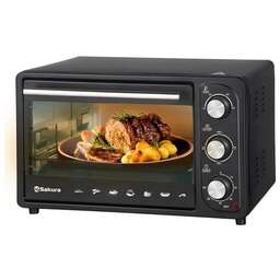 35л, духовка 1600Вт, механ.управление, 3 режима работы духовки (верх, низ, верх+низ), таймер на 60 минут, регулировка температуры духовки, комплектация - металлическая решетка, противень, круглая форма для выпечки (230х50 мм), ухват. Цвет: чёрный.