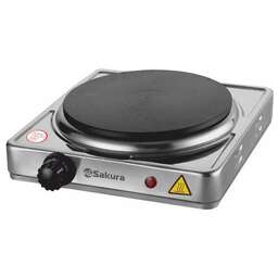 Мощность 1000Вт, 1 конфорка 145 мм, прочный корпус из нержавеющей стали, с которого легко удаляются загрязнения, спиральный нагревательный элемент, регулируемый термостат, индикатор работы. Длина сетевого шнура – 1м. Срок службы прибора – 5 лет. Цвет – нерж.сталь/черн.