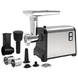 С овощерезками Мощность, Вт: 2200 Производительность кг/мин: 2.5 Функция реверс: Да Перфорированные диски для мяса, размер отверстий мм: 5 и 7 Защита двигателя от перегрузки: Да Нож из нержавеющей стали: Да Насадка кеббе: Да Насадка для приготовления домашних сосисок: Да Насадки для терки и шинковки овощей, шт.: 2 Материал лотка для подачи мяса: Металл Количество решеток: 2 Особенности модели: Планетарный редуктор, Металлические шестеренки Металлические шестерни: Да Цвет: Сталь