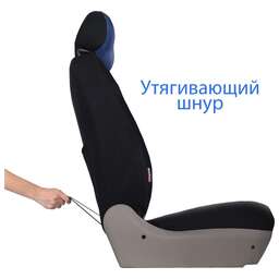 Чехлы универсальные, материал – сверхпрочный жаккард, 3-х уровневая ортопедическая поддержка, подходит для автомобилей с боковыми Airbag, липучки передних спинок, карман, 6 молний на заднем ряду, комплектация: 11 предметов, крепеж для установки.