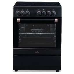 Рабочая поверхность: Рабочий стол: стеклокерамика Количество конфорок: 4 быстрого нагрева Диаметр конфорок: 2 - Круглая зона нагрева 140 мм 2 - Круглая зона нагрева 180 мм Духовой шкаф: Тип: электрический Механический таймер 90 минут Количество режимов работы: 9 Электрический термостат Полезный объем: 60 л Эмаль легкой очистки “Easy Clean” Двойное остекление дверцы “Cool touch” + Low-e Подсветка внутренней камеры духовки Хромированные направляющие Дополнительная информация: Габариты: 85x60x60 см Управление: поворотные переключатели Цвет: антрацит Цвет переключателей — чёрный с декоративным розово- золотым обрамлением. Декоративный кант розовое золото Комплектация: 1 стандартный противень 1 хромированная решётка 1 круглый Diamond противень