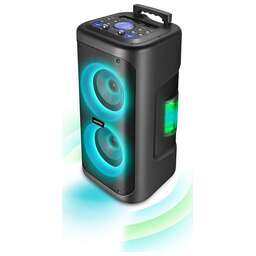 Мощность: 16 Вт. Количество динамиков, диаметр: 2 * 100 мм Функционал: Bluetooth, FM-радио, MP3-плеер (USB / MicroSD), управляемая RGB-подсветка, TWS, караоке. Емкость аккумулятора / напряжение: 1200мАч / 3.7 В. Время автономной работы: до 6 часов. В комплекте: проводной микрофон, зарядный кабель MicroUSB, инструкция пользователя.