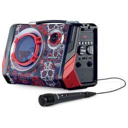 Дизайнерская Bluetooth-колонка с двумя динамиками – 127мм широкополосным и 38мм высокочастотным твиттером, общей мощностью 18Вт. В комплекте караоке-микрофон. На колонке предусмотрен второй аудио вход для подключения гитары или второго микрофона. Также преимуществом данной колонки является мощность батарей – ёмкость 1800мАч на 7,4В это круто! Это позволяет эксплуатировать устройство до 6 часов! USB, MicroSD, FM также в комплекте.