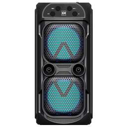 Номинальная выходная мощность (RMS): 150 Вт Пиковая выходная мощность: 1500 Вт Динамики: 2 x 8” + 2 x 2.5” Bluetooth 5.3 Поддерживаемые аудиоформаты: MP3, WAV, WMA, FLAC, APE Функция True Wireless Stereo (TWS) Цифровой FM-тюнер (87.5-108 МГц) Воспроизведение с USB 2.0 и microSD карты Поддержка зарядки внешних устройств USB 5 В, 1 А Аудиовход 3.5 мм jack Микрофонный и гитарный входы 6.35 мм jack Функция караоке Встроенная батарея: 7000 мАч Время работы от аккумулятора до 8 часов* LED дисплей Многоцветная LED подсветка динамиков Уровень влагозащиты: IPX4 Размеры устройства: 715 x 310 x 295 мм Цвет: черный