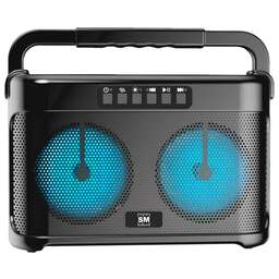 Выходная мощность, 20 Вт Частотный диапазон 100 Гц - 18 кГц Количество и размер динамиков 2 х 3" Эквалайзер Нет Поддерживаемые аудиоформаты MP3, WAV Версия Bluetooth 5.1 Диапазон FM 87.5 - 108 МГц Аудиовход AUX Да Вход для микрофонаДа Разъём USB Да Слот для SD карт Да Hands-free Нет Функция True wireless stereo Да Голосовой помощник Нет Дисплей Нет Наличие подсветки Да Аккумуляторная батарея (тип, ёмкость) Литий-ионная, 1200 мАч Время работы от аккумулятораДо 8 часов Параметры адаптера 5 В 2 А Тип разъёма питания MicroUSB Комплектация Кабель USB, инструкция Цвет Чёрный Габариты устройства Ш х В х Г, мм 239 х 120 х 102 мм