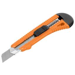 Нож Sparta 78973 с выдвижным лезвием шириной 18 мм и металлической направляющей рассчитан на выполнение мелких ремонтных и монтажных работ, а также для рукоделия и бытового использования. Он режет тонкие материалы, например, бумагу или картон. Нож не нужно затачивать. Преимущества Лезвие выполнено из твердой и прочной стали 60, долго сохраняет режущие свойства. Металлическая направляющая защищает корпус и надежную фиксирует лезвие для работы с плотными материалами. Сегментирование лезвие можно использовать многократно — для его обновления достаточно отломать одну секцию. Хвостовая часть ножа легко открывается для быстрой замены лезвия.