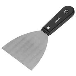 Стальная шпательная лопатка Sparta 852425 шириной 100 мм, полированная, с пластмассовой ручкой, станет незаменимым помощником при проведении строительных и ремонтных работ. Пригодится мастерам для нанесения, выравнивания и сглаживания различных клеевых и строительных растворов. Преимущества Одна лопатка для разных задач — за счет острого края полотном удобно удалять с поверхностей следы ржавчины. Коррозионная стойкость — рабочая часть покрыта защитным бесцветным лаком. Прочность и долговечность — полотно выполнено из углеродистой стали и надежно скреплено с рукояткой. Качественная работа — полотно отполировано, поэтому к нему не прилипает раствор, а обрабатываемая поверхность получается идеально гладкой. Небольшая ширина 10 см — шпателем удобно работать в труднодоступных местах. Комфортная работа — легкая пластиковая рукоятка удобно ложится в руку. Практичное хранение — в рукоятке имеется отверстие для подвешивания.