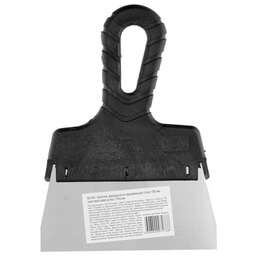Шпательная лопатка Sparta 85135 с полотном из нержавеющей стали шириной 100 мм и пластмассовой ручкой предназначена для работы со строительными растворами. Используется для их смешивания, нанесения и равномерного распределения по небольшим поверхностям. Преимущества Надежность — рабочее полотно из нержавеющей стали не боится воздействия щелочей и легко выдерживает изгибающие нагрузки. Комфортная эксплуатация — ровное лезвие и наклонная рукоятка облегчают нанесение и выравнивание раствора. Эргономичность — пластмассовая рельефная ручка удобно ложится в руку и не выскальзывает из ладони. Удобное хранение — в рукоятке предусмотрено отверстие для подвешивания шпателя.