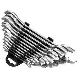 Набор из 12 хромированных рожковых ключей Sparta 152945 предназначен для откручивания и закручивания болтов, гаек и других крепежей с шестигранным профилем размером от 6 до 32 мм. У каждого ключа имеются рабочие губки с различным размером зева. Они расположены под углом к рукоятке, что облегчает работу в стесненных условиях. Инструменты используются для сборки и разборки оборудования, при проведении монтажных работ, будут полезны дома, на даче или в гараже. Преимущества Прочность и деформационная стойкость — ключи изготовлены из углеродистой стали 45. Устойчивость к износу — твердость рабочих частей составляет 42 HRC, что полностью соответствует требованиям ГОСТ. Долговечность — хромированная поверхность ключей не подвержена коррозии.