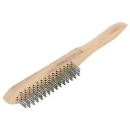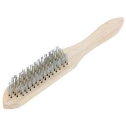 Металлическая четырехрядная щетка Sparta 748225 с деревянной ручкой — инструмент для ручного удаления ржавчины, грязи, остатков краски с металлических, деревянных и других поверхностей. Четырехрядная щетина обеспечивает качественную обработку. Щеткой пользуются строители, ремонтники, специалисты по кузовному ремонту, пригодится она и в быту. Преимущества Износостойкость — щетина из высококачественной стальной проволоки выдерживает интенсивное применение. Антикоррозионная защита — на проволоку нанесено цинковое покрытие. Долговечность — щетка имеет прочный деревянный корпус и рукоятку.