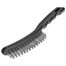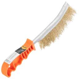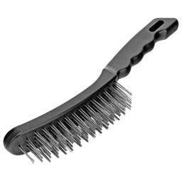 Металлическая щетка Sparta 748505 с пластмассовой ручкой — инструмент для зачистки металлических, деревянных и других поверхностей. Эффективно удаляет ржавчину, въевшуюся грязь, старое лакокрасочное покрытие. Благодаря изогнутому корпусу щетка удобна для обработки поверхностей сложной формы. Используется в строительстве и на производстве. Будет полезна во время ремонта, а также дома или в гараже. Преимущества Прочность и долговечность — основание выполнено из металла, а рукоятка — из прочного полипропилена. Высокий ресурс — благодаря витой проволоке из высококачественной стали щетина сохраняет форму при динамических нагрузках. Коррозионная стойкость — проволока защищена латунированным покрытием. Комфортная работа — эргономичная рукоятка с подпальцевыми выемками удобно ложится в руку.
