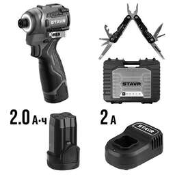 Шуруповерт ударный аккум. 160Нм, BL, Stavr SID 16BL-160V-2K, hex 1/4" (6,35мм), 4 режима, 0-3500об/мин, круговая подсветка (АКБ 2.0Ач 2шт, ЗУ, мультитул, битодержатель, клипса, кейс)