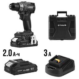 Дрель-шуруповерт аккум. 50Нм, 18V UNI-M, BL, Stavr SDD 18BL-2K, БЗП 10мм, 2 скорости 0-500/1600об/мин, автолок, подсветка (АКБ 2х2.0Ач, ЗУ, кейс)