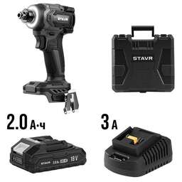 Гайковерт ударный аккум, 380Нм, BL, 18V UNI-M, Stavr SWI 18BL-380V-1К, 1/2", 2 режима, момент срыва 600Нм, 1900/2600об/мин (АКБ 4.0Ач, ЗУ, кейс)