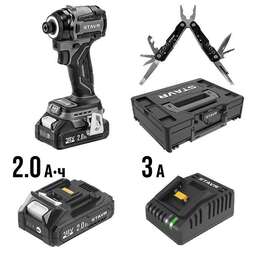 Шуруповерт ударный аккум. 200Нм, BL, 18V UNI-M, Stavr SID 18BL-200V-2K, hex 1/4" (6,35мм), 17 режимов,1100/2100/3100/3500об/мин, круговая подсветка (АКБ 2.0Ач 2шт, ЗУ, мультитул, битодержатель, клипса, кейс)