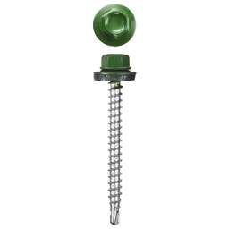Кровельные саморезы STAYER изготовлены из высокоуглеродистой закаленной стали. Поверхностная твердость мин. 560HV, твердость в сердцевине 240-425HV. Шайба с прокладкой из износостойкой резины EPDM предназначена для герметизации соединения. Шестигранная головка с размером под ключ 8мм позволяет закручивать саморез с большим усилием. Преимущества Кровельные саморезы снабжены шайбой с прокладкой из резины EPDM, обеспечивающей герметичность соединения. Наконечник-сверло обеспечивает быстрое и легкое вкручивание самореза в черепицу и листовые кровельные материалы Головка самореза с шайбой окрашена по стандарту RAL Цинковое покрытие надежно защищает от коррозии Использование Предназначены для крепления различных кровельных материалов к металлическим конструкциям или деревянной обрешетке