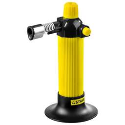 Инструмент выполнен из прочных материалов, что увеличивает срок его службы. Фиксация кнопки пуска упрощает непрерывную эксплуатацию Преимущества Система гашения вспышек Anti Flafe Пьезоэлектрическая система зажигания для мгновенного включения Сверхмощное широкое пламя (1300 °С) Кнопка переключения на постоянный режим работы Встроенная емкость 50 мл для газа (бутан), до часа работы от одной заправки Сопло горелки имеет эргономичный угол наклона по отношению к корпусу Защита от случайного включения/выключения для безопасной работы Цельнометаллический корпус и керамический изолятор для длительного надежного использования Использование Газовая горелка предназначена для плавки и сварки пластиковых частей, нагрева малых металлических частей и плавки металла с низкой температурой плавления, ремонта ювелирных изделий, сгибания тонких стеклянных трубок, пайки медных трубок, сварки электронных и электротехнических элементов, где очень важна точность и надежность. Изделие обладает возможностью выбора температурного режима, что позволяет максимально соответствовать требованиям любой работы. Этот легкий в обращении инструмент, работающий на бутане. Универсальная горелка имеет встроенный клапан для заправки. Заправляется от баллона с бутаном для газовых зажигалок. Создает устойчивое пламя температурой до 1300 °С.