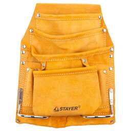 STAYER кожаная, 2 скобы, поясная сумка для инструментов с 8 карманами (38505)