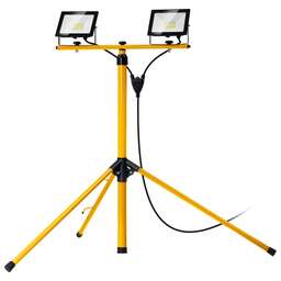 Прожекторы STAYER на штативе - осветительный прибор, состоящий из прочной и устойчивой треноги с двумя прожекторами на основе ярких, высокоэффективных и долговечных источников света. Корпус прожекторов выполнен из алюминиевого сплава литого под давлением, обеспечивающего высокую теплоопередачю. Конструкция прожектора защищена от пыли и влаги (IP65). Преимущества Устойчивая металлическая конструкция регулируемая по высоте 65-160 см Срок службы светодиодов 30 000 часов. Быстрый монтаж Яркий белый свет 6500 К Герметичная пыле-влагозащищенная конструкция IP65 Порошковая окраска обеспечивает защиту от коррозии Длинный кабель с одновременным подключением 2-х прожекторов Использование для освещения на открытых строительных и производственных площадках. Используется для подсветки объектов: витрин, экспозиций, рекламных стендов и щитов, фасадов зданий и т.п. Прожекторы могут также применяться для внутреннего освещения больших помещений: залов, спортивных помещений, автостоянок. Конструкция прожектора и применяемые материалы обеспечивают высокую механическую прочность и защиту от проникновения пыли и влаги по классу IP65.