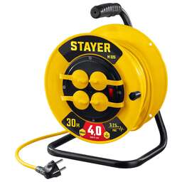 Электротехнические изделия STAYER созданы на основе современных материалов и технологий. Благодаря соблюдению высоких стандартов качества, наша продукция обеспечит надежную работу на протяжении всего срока службы. Является незаменимым помощником, обеспечивая комфорт в работе и отличный результат. Преимущества Провод КГ (резиновая изоляция) устойчив к низким температурам до -40°С, к агрессивным средам, к деформациям и ударам. Надежная стальная катушка для профессиональого использования Заземляющая жила обеспечивает повышенную электробезопасность Пыле-влагозащита IP44 Надежное крепление кабеля к клеммам, предотвращает нагрев и искрение Специальный воротник, защищающий шнур от перегибов и истирания Благодаря высокой гибкости, кабель выдерживает многократные сгибания и разгибания, что исключает риск появления оголенных участков. Катушка позволяет легко сматывать и разматывать кабель, обеспечивая мобильное перемещение и компактное хранение. Использование Удлинитель предназначен для подключения бытовых электрических приборов расположенных на небольшом расстоянии от питающей сети.