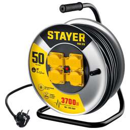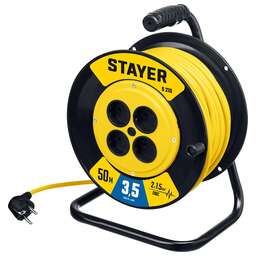 STAYER S-207, ПВС, 2 х 0.75 мм2, 50 м, 2200 Вт, удлинитель на катушке (55073-50)