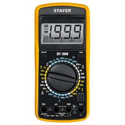 Профессиональный цифровой мультиметр DT-300 отличается многофункциональностью и портативностью. Расширенный функционал прибора обеспечивает потребности различных мастерских и лабораторий. Измерительный инструмент отлично справляется с работой в агрессивных условиях благодаря защитному прорезиненному чехлу. Преимущества Цифровой дисплей с разрядностью 2000 отсчетов Метод измерений - АЦП двойного интегрирования Проверка диодов Проверка транзисторов Проверка цепи со звуком Функция фиксации данных ″Hold″ Автоматическая индикация перегрузки Авто отключение Поворотный экран Встроенная подставка Категория безопасности КАТ II 1000 В по ГОСТ Р52319 (МЭК 61010-1) Индикатор заряда батареи Защитный накладной чехол Использование