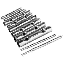 Набор трубчатых ключей STAYER 2719-H10 состоит из восьми ключей и двух стержней. Трубчатые ключи используеются при работе с шестигранным крепежом. Благодаря продолговатой форме ключа, удобно работать инструментом в труднодоступных местах. Технические характеристики набора трубчатых ключей STAYER 2719-H10 Размер min, мм 6 Размер max, мм 22 Материал CrV Трещотка нет Вес, кг 0.79 Количество в наборе, шт 8 Тип торцевые Диэлектрическое покрытие нет Этот товар из подборок торцевые Комплектация * 8 трубчатых ключей: 6х7, 8х9, 10х11, 12х13, 14х15, 16х17, 18х19, 20х22 мм; Стержень - 2 шт.