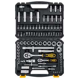 Возможность подвешивания: нет. Кейс: есть. Количество в наборе, шт: 39. Присоединительный квадрат, дюйм: 1/4. Рукоятка для переноски: нет. Биты (6,35-25 мм): 3, 4, 5, 6, 7; PH0, 1, 2, 3; PZ 0, 1, 2, 3; T10,15, 20, 25, 27, 30, 40; H3, 4, 5, 6 - 24 шт. Адаптер для головок - 1 шт. Торцовые головки 1/4": 4, 5, 6, 7, 8, 10,11, 12, 13 - 9 шт.