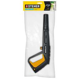 Качественные комплектующие для расширения функциональности моек STEHER Преимущества Рассчитан на давление до 250 Атм Блокировка выключателя для защиты от случайного включения Эргономичная рукоятка Надежное резьбовое соединение как шланга подачи воды, так и насадок Использование Для направленного регулируемого распыления струи высокого давления на выходе из мойки