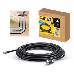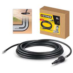 Качественные комплектующие для расширения функциональности моек STEHER Преимущества Длина 8 метров позволяет далеко продвигаться по загибам труб Надежное резьбовое соединение Использование Для прочистки труб (сливных, дождевых, канализационных) от загрязнений путем подачи струй высокого давления